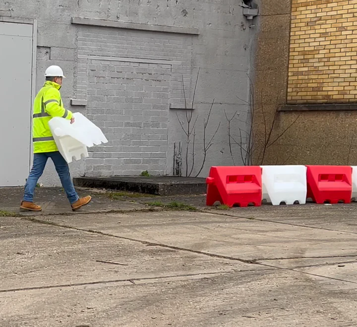 De barriers grijpen stevig in elkaar, waardoor een aaneengesloten en stabiele afzetting ontstaat. Deze verkeersbarriers zijn vulbaar met water of zand om ze te verzwaren, waardoor de barriers bestand zijn tegen wind en aanrijdingen door voertuigen. Leeg zijn ze lichtgewicht en daardoor eenvoudig te verplaatsen, wat transport en opslag zeer eenvoudig maakt.