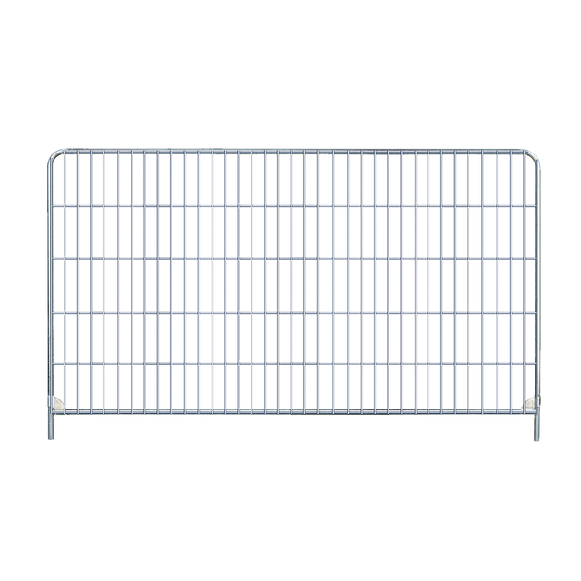 Clôture de chantier grillagée avec tube supérieur cintré pour plus de robustesse, dispose de renforts aux angles inférieurs pour une plus grande durabilité.